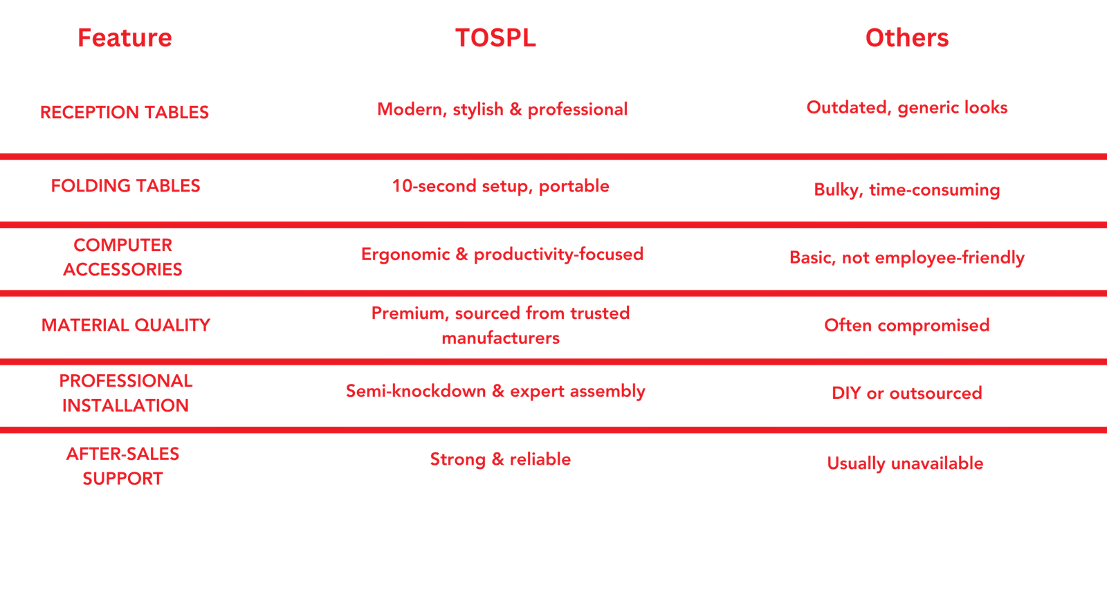 PLEASURE AT WORKPLACE – TOSPL RANGE of computer accessories make it a pleasurable and pleasant experience for your Employees, giving them freedom to perform their best and removing limitations from their workplaces so they can give their best to your company.