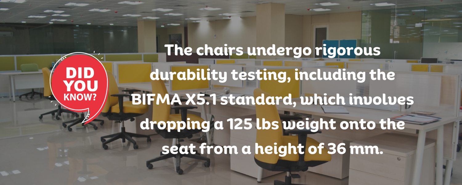 Our unique collection of office chairs, lounge seating, and sofas are designed to impress you and your clients. We find happiness in furnishing your workspace with our best-in-quality seating solutions. Can’t believe on our words? Just watch the video of the durability test of chairs and decide for yourself.